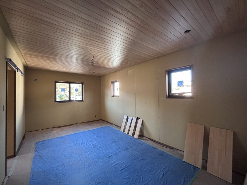 - 天井に化粧の羽目板がつきました✨