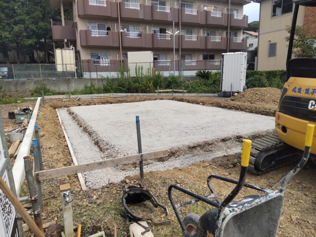 - 基礎床部分のコンクリートを施工しました
