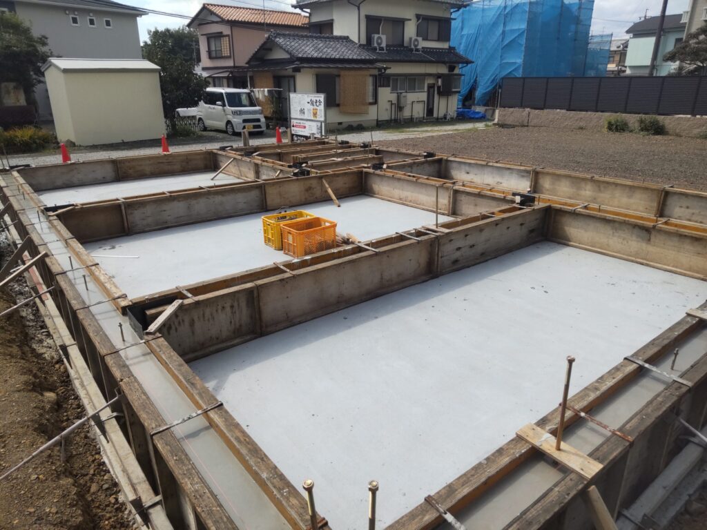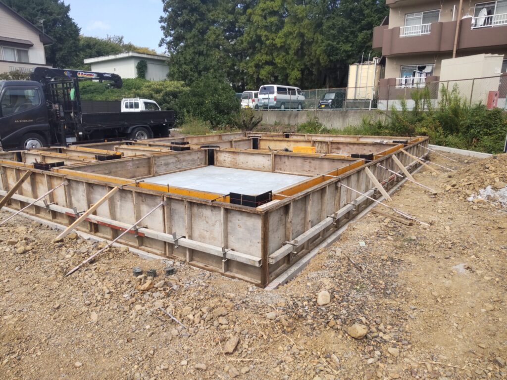 - 立ち上がり枠にコンクリートを打設し、養生期間をとっています