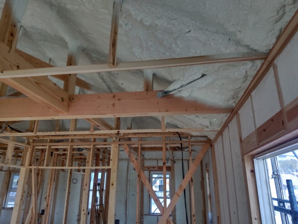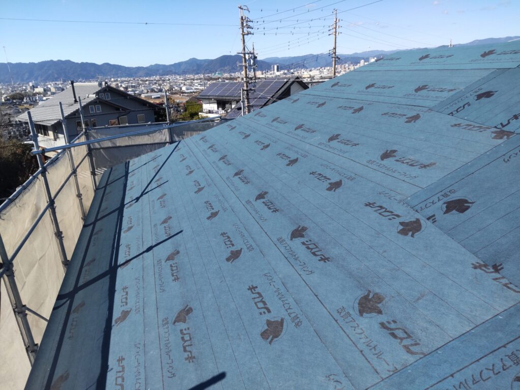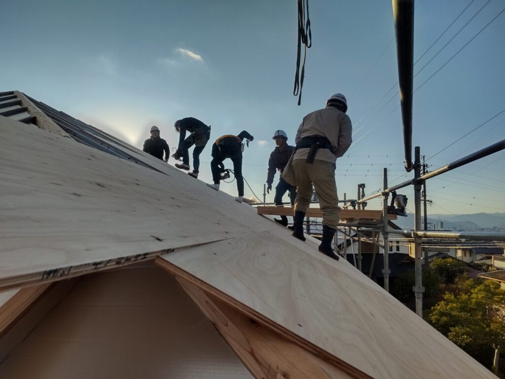 - 寄棟屋根の下地を施工します 1日で施工が完了しました