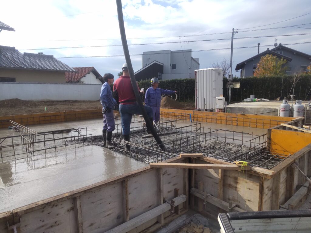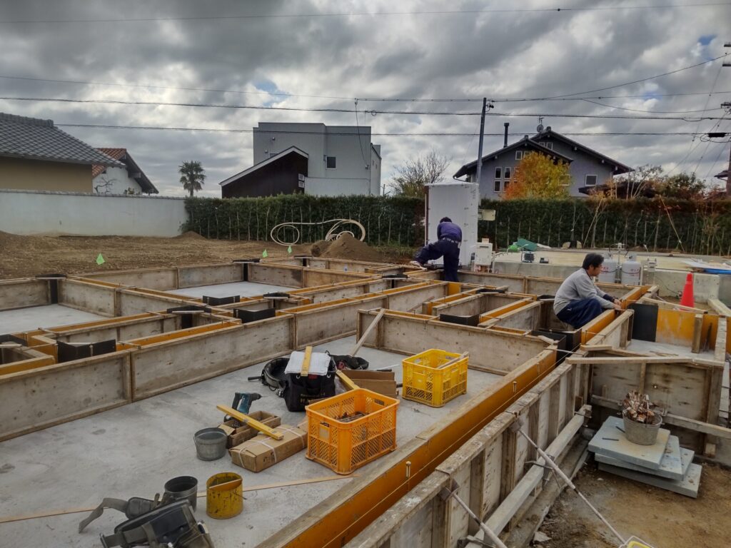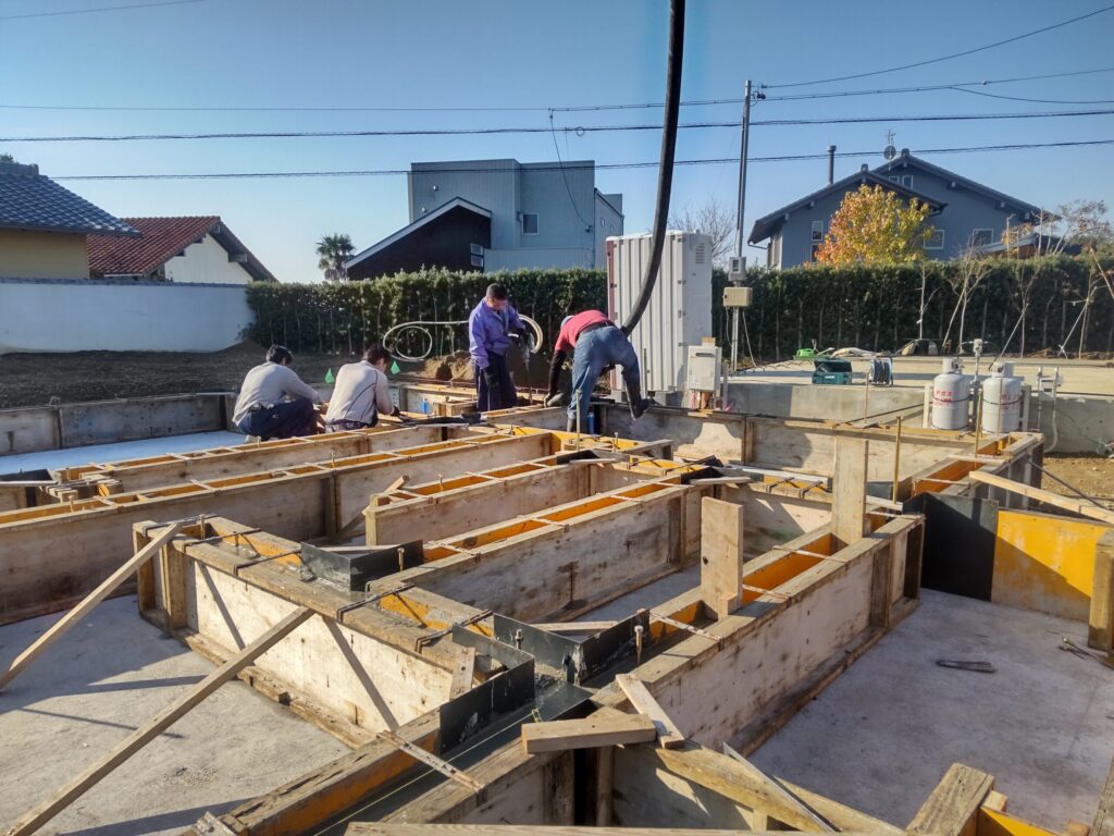 - 基礎立ち上がり部分にコンクリートを打設しました