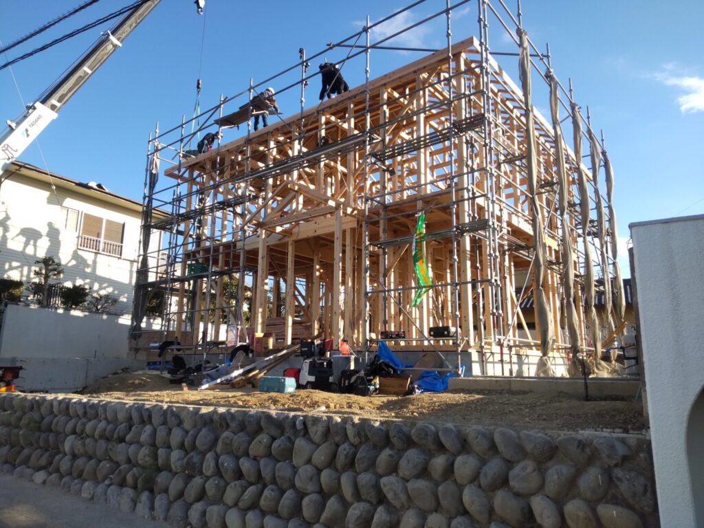 - 土台の施工が完了しました 年明けの上棟に向けて養生も実施しました