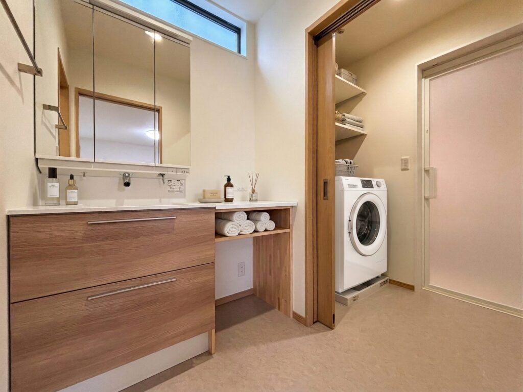 洗面室と脱衣室がわかれており、余裕の広さ。