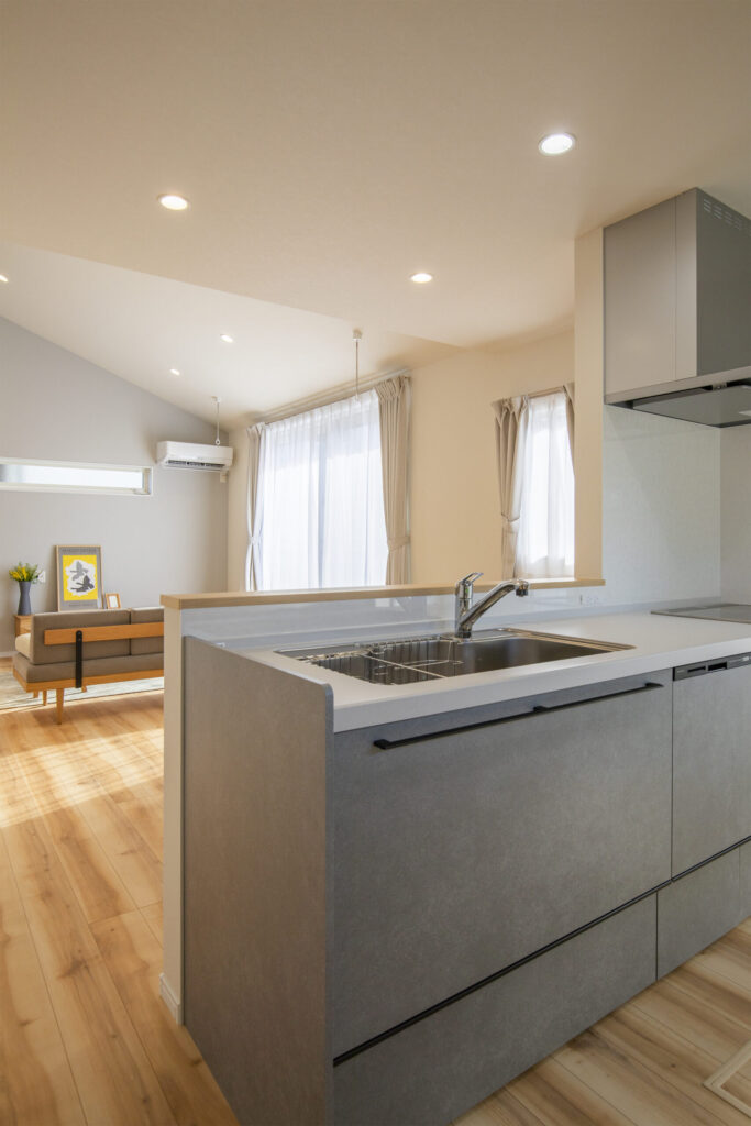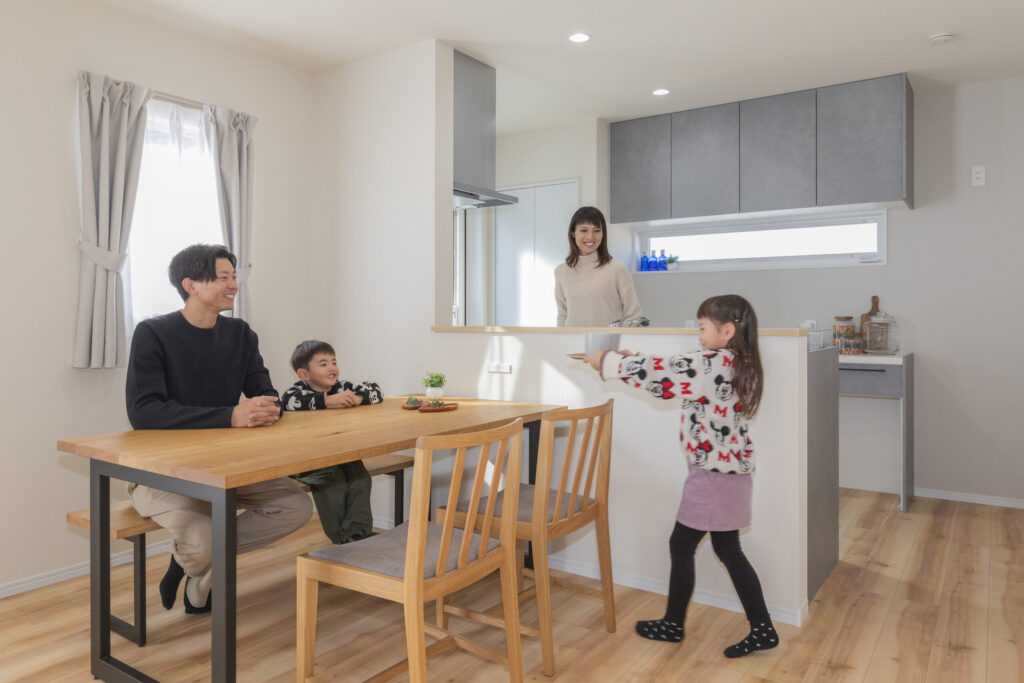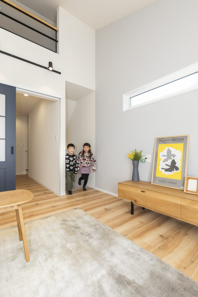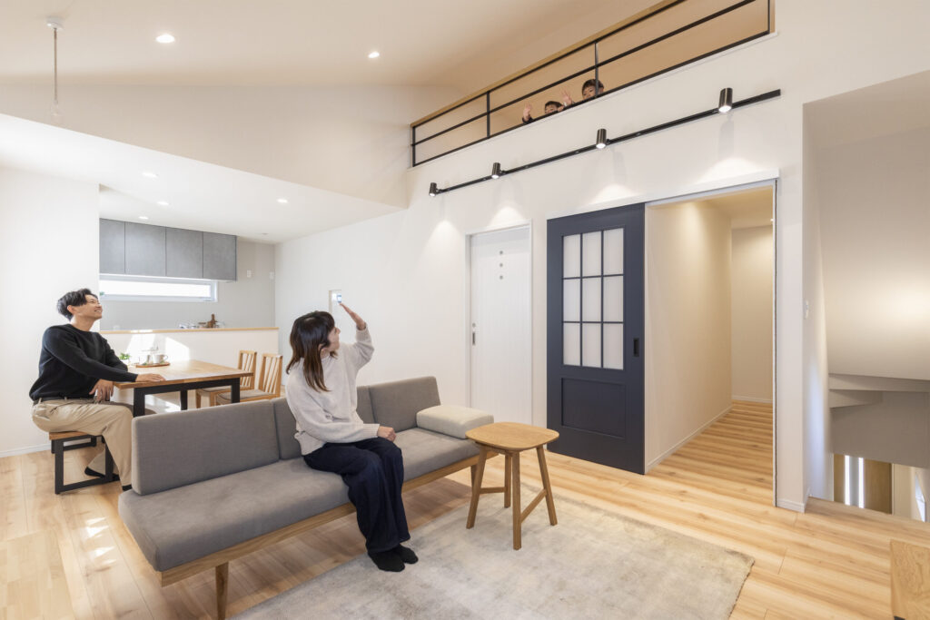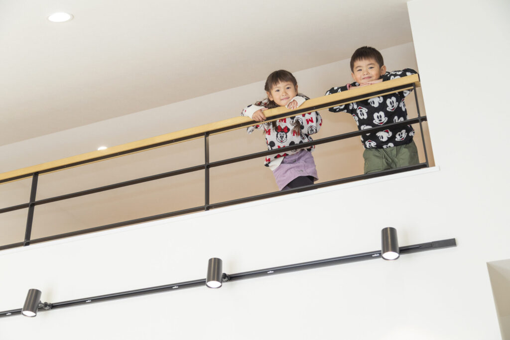 お互いの生活リズムを尊重した「完全分離型」の二世帯住宅です。二世帯だと音や生活リズムが気になるので、そこは一番大事にしました。2階は若いご夫婦とかわいいお子さんの世帯。ロフトのある明るいリビングや家事ラクな回遊動線で、お子さんたちが走り回れるのもいいですね。ご主人と細部まで語り合い、こだわりを詰め込んだ満足度の高い一軒になりました。